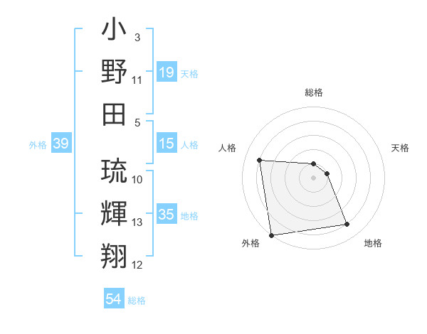 小野田 琉輝翔さんを姓名の画数から五運を鑑定