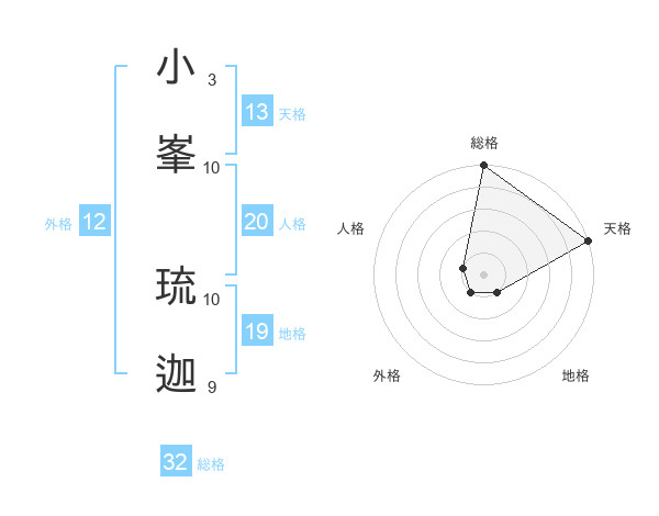 小峯 琉迦さんの天格は13画の5点!