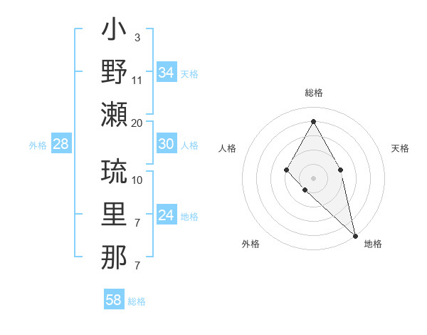 小野瀬 琉里那さんを姓名の画数から五運を鑑定