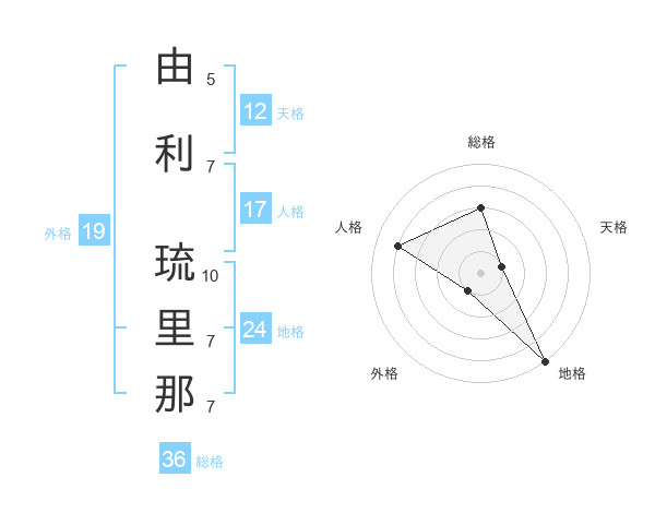 由利 琉里那さんの天格は12画の1点!