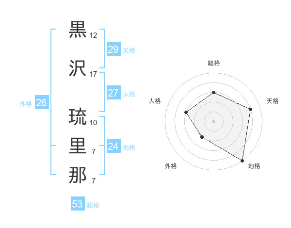 黒沢 琉里那さんの天格は29画の4点!