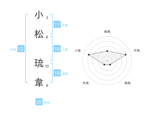 小松 琉韋さんを姓名の画数から五運を鑑定