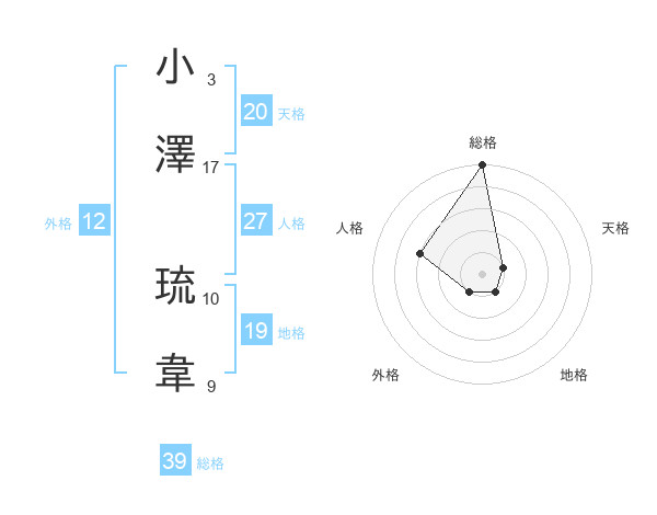 小澤 琉韋さんの総格は39画の5点!