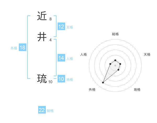 近井 琉さんの総格は22画の1点!