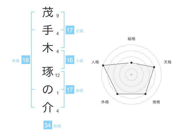 茂手木 琢の介さんを姓名の画数から五運を鑑定