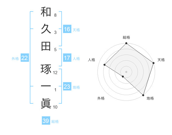 和久田 琢一眞さんを姓名の画数から五運を鑑定