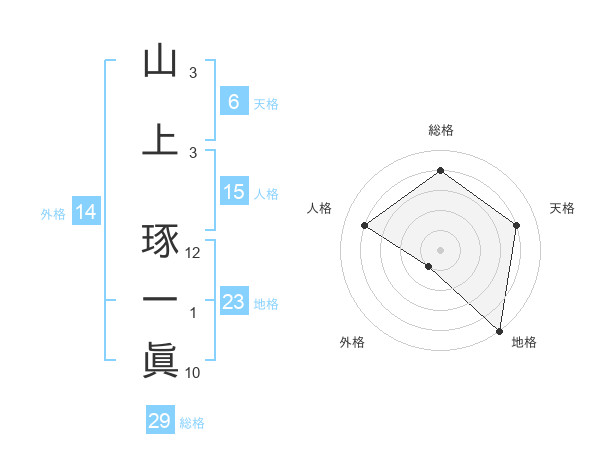 山上 琢一眞さんを姓名の画数から五運を鑑定