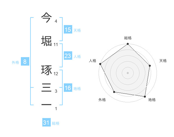 今堀 琢三一さんを姓名の画数から五運を鑑定