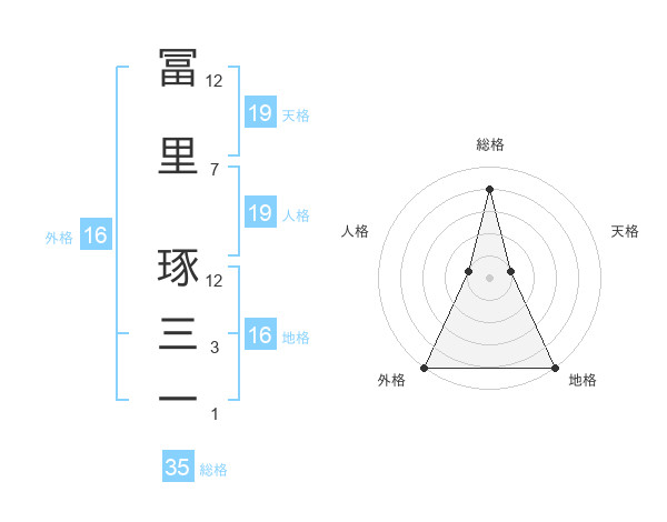 冨里 琢三一さんを姓名の画数から五運を鑑定