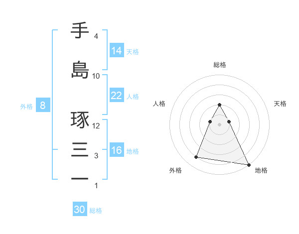 手島 琢三一さんを姓名の画数から五運を鑑定