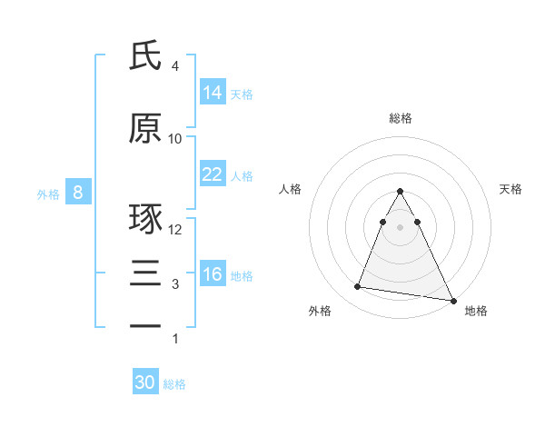 氏原 琢三一さんを姓名の画数から五運を鑑定
