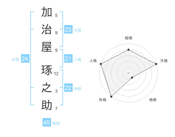 加治屋 琢之助さんの外格は24画の5点!