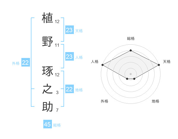 植野 琢之助さんを姓名の画数から五運を鑑定