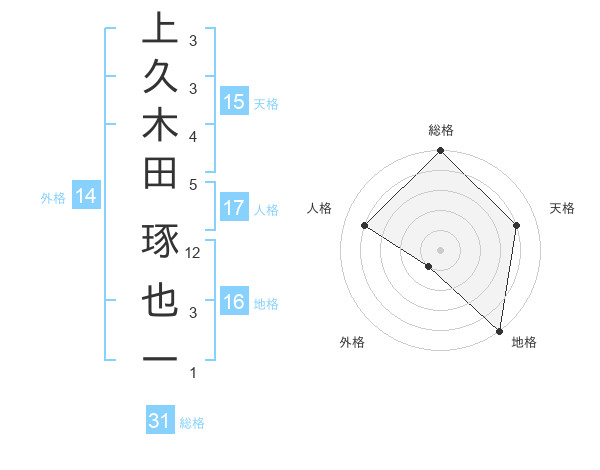 上久木田 琢也一さんの総格は31画の5点!