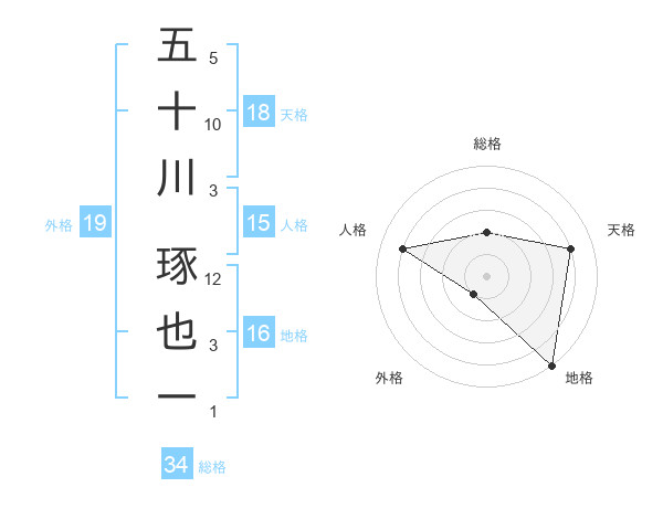 五十川 琢也一さんを姓名の画数から五運を鑑定