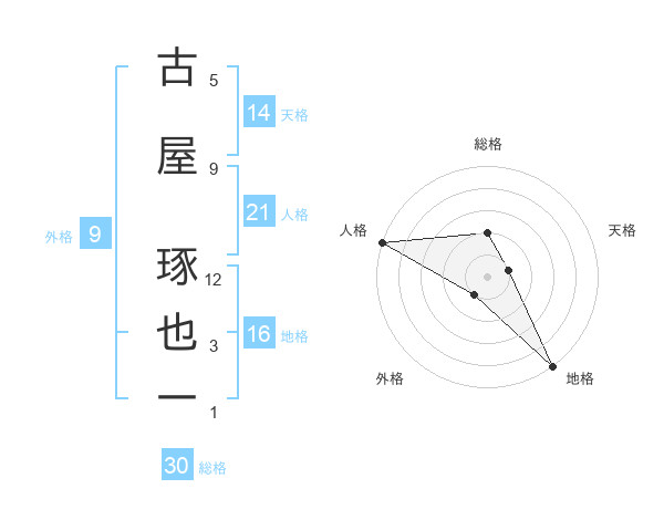 古屋 琢也一さんを姓名の画数から五運を鑑定