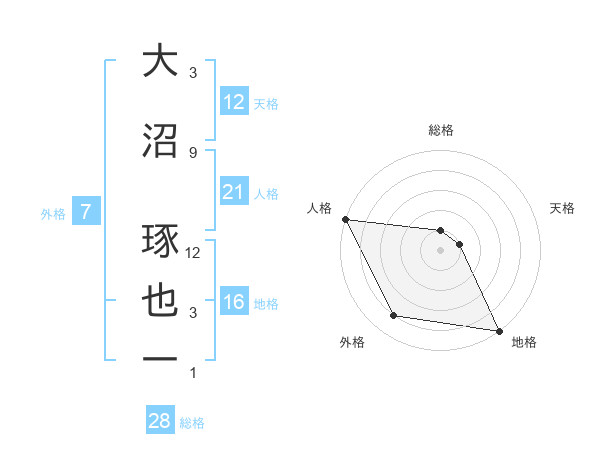 大沼 琢也一さんを姓名の画数から五運を鑑定