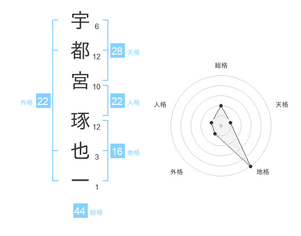宇都宮 琢也一さんを姓名の画数から五運を鑑定