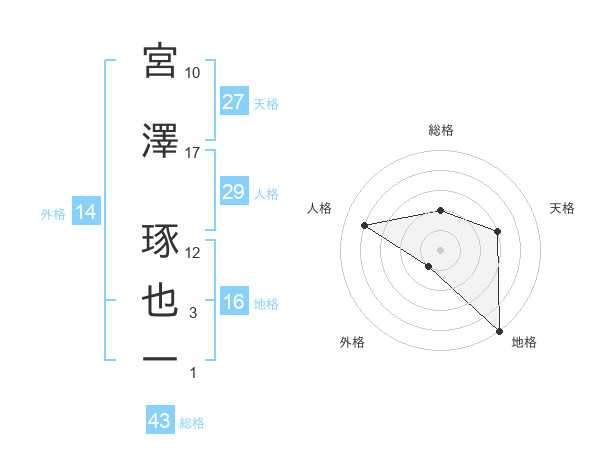宮澤 琢也一さんを姓名の画数から五運を鑑定