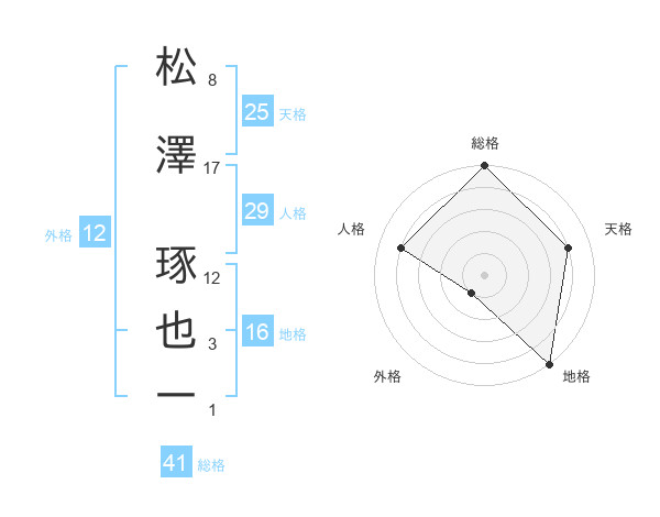 松澤 琢也一さんの地格は16画の5点!