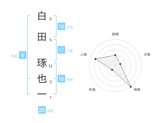 白田 琢也一さんを姓名の画数から五運を鑑定