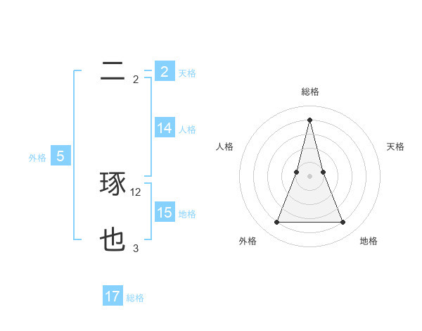 二 琢也さんの総格は17画の4点!