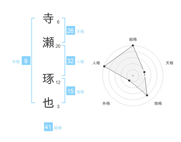 寺瀬 琢也さんの総格は41画の5点!