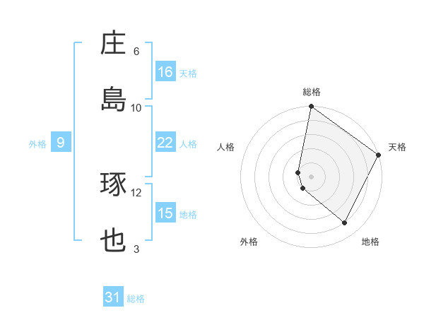 庄島 琢也さんの総格は31画の5点!