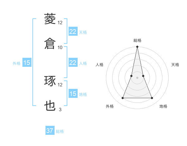 菱倉 琢也さんを姓名の画数から五運を鑑定