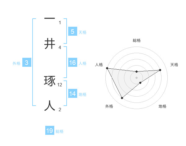 一井 琢人さんの総格は19画の1点!