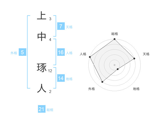 上中 琢人さんの総格は21画の5点!