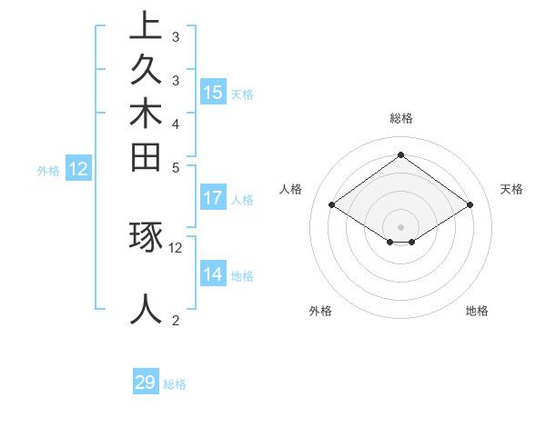 上久木田 琢人さんの総格は29画の4点!