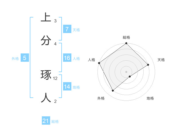 上分 琢人さんの総格は21画の5点!