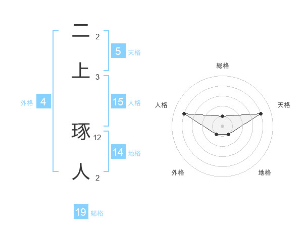 二上 琢人さんの天格は5画の4点!