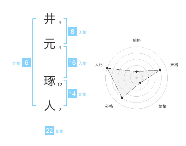 井元 琢人さんの天格は8画の4点!