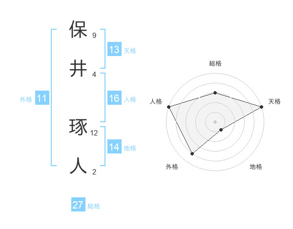 保井 琢人さんの天格は13画の5点!