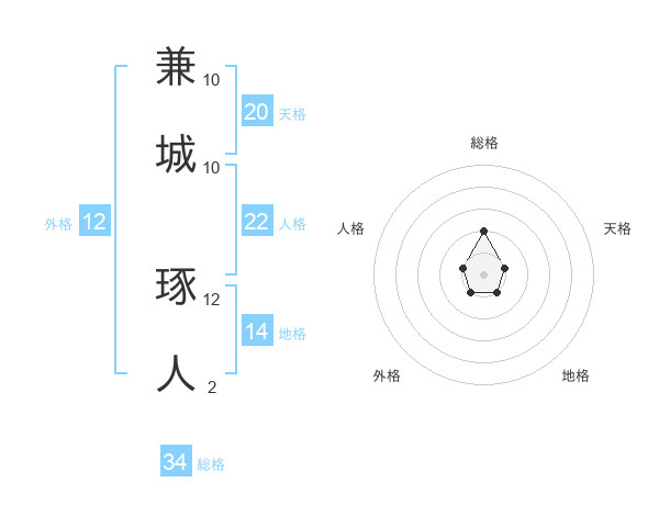 兼城 琢人さんを姓名の画数から五運を鑑定