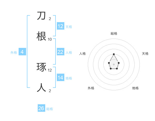 刀根 琢人さんを姓名の画数から五運を鑑定