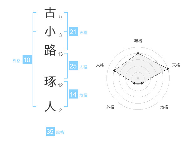 古小路 琢人さんの天格は21画の5点!