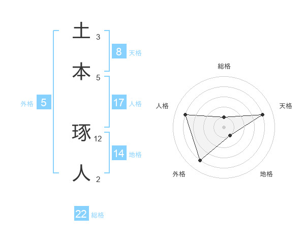 土本 琢人さんの総格は22画の1点!