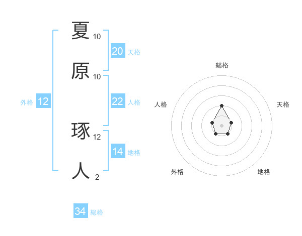 夏原 琢人さんを姓名の画数から五運を鑑定
