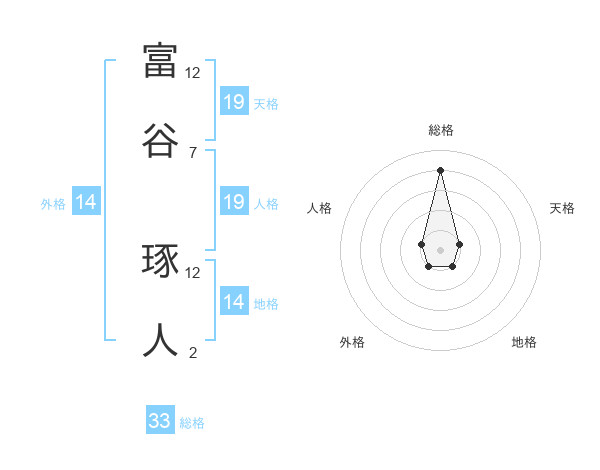 富谷 琢人さんを姓名の画数から五運を鑑定