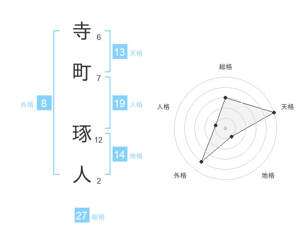 寺町 琢人さんの天格は13画の5点!