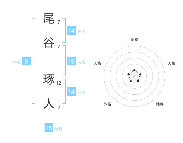 尾谷 琢人さんの天格は14画の1点!