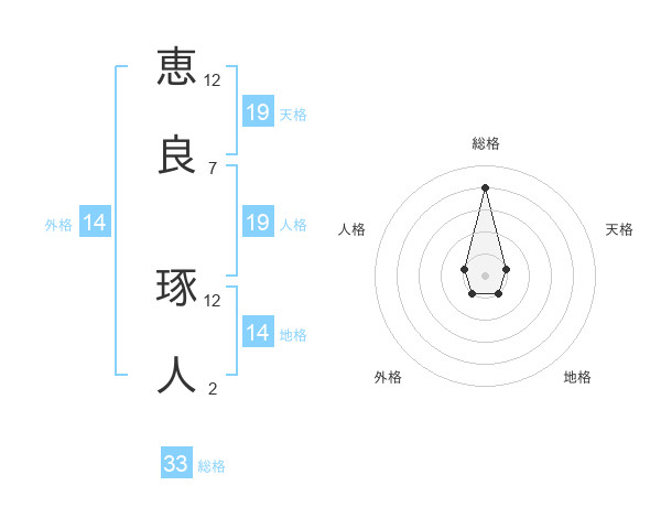 恵良 琢人さんの総格は33画の4点!