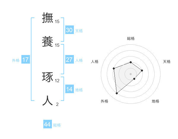 撫養 琢人さんの総格は44画の2点!