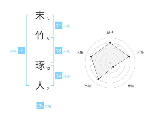 末竹 琢人さんの総格は25画の4点!