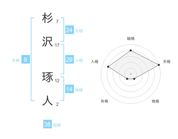 杉沢 琢人さんの総格は38画の4点!