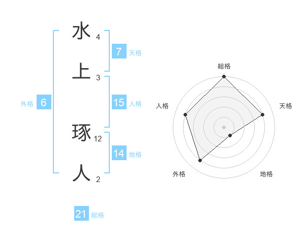 水上 琢人さんの総格は21画の5点!