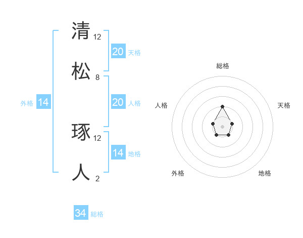清松 琢人さんの天格は20画の1点!